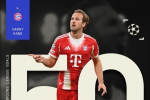 據(jù)媒體統(tǒng)計(jì),凱恩成為歐冠歷史第11位打進(jìn)50球的球員,也是英格蘭球員首人。