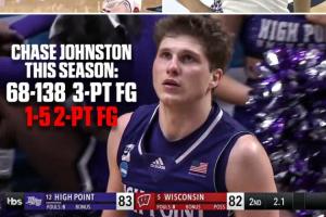本場比賽,海波特大學后衛蔡斯·約翰斯頓成為球隊取勝功臣,值得一提的是身為三分球專家的他本場比賽前賽季三分132投64中,兩分卻是4中0,本場比賽過后,三分變成138中68,兩分5中1,而這唯一的兩分球就是最關鍵的上籃絕殺(此前追到只差1分的三分球也是他投的)!