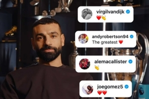 利物浦官方更新社媒動態,曬出隊友們社媒留言致敬薩拉赫的合集。
