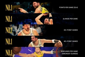 體育資訊3月25日訊 今天,湖人官方曬出了東契奇的幾項數據記錄,并寫道:“數據不會說謊?!痹斍槿缦拢?/p>