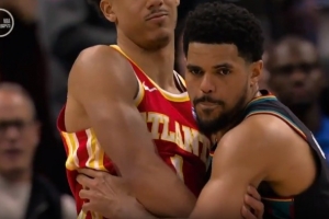 裁判開始吹哈里斯防守犯規,活塞挑戰成功,杰倫·約翰遜進攻犯規