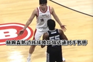 GIF-楊瀚森防邊線球一直噴垃圾話 對手懵圈被噴暫停了