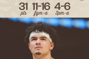本場桑托斯打出生涯之夜,35分鐘16投11中,三分6中4、罰球8中5砍下生涯新高31分外加3籃板1助攻2搶斷1蓋帽,也有5失誤,正負(fù)值-6。
