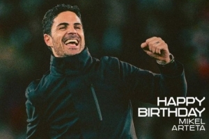 體育資訊3月26日訊 阿爾特塔今天迎來44歲生日,阿森納官推發文祝福。