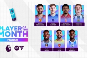 體育資訊3月26日訊 今日,英超聯賽官方公布了3月最佳球員候選,B費、拉亞、維爾貝克、安東尼·戈登等7將入選。