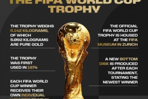 獎杯重6.142公斤,其中純金含量為5.092公斤