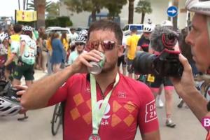 他在抵達終點后坦言:“前幾公里感覺還特別好。但最后那25公里…… 我實在是騎不動了。” 疲憊不堪的他,在高強度運動后犒勞了自己一瓶啤酒。