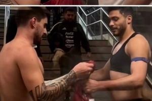 比賽結束之后,勞爾·希門尼斯與魯本·內維斯互換球衣,兩人曾在狼隊共事