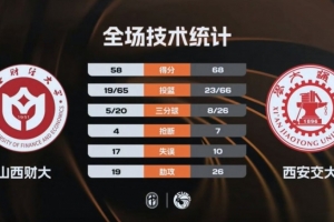 末節(jié)比賽,西安交大的進攻表現(xiàn)有所回落,前七分鐘的時間里只拿到6分,這也給了山西財大追分的機會,分差最小時僅剩3分,但之后她們一分未得,西安交大連拿7分穩(wěn)住局勢,韓晴更是命中壓哨三分球,最終西安交大68-58力克山西財大奪得西北王。