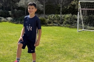 巴斯克斯曬孩子身穿維尼修斯球衣照片:感謝維尼修斯,我們愛你
