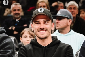 格列茲曼現場觀看籃網隊比賽,為同胞特拉奧雷加油助威