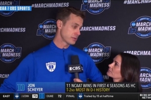 賽后,杜克大學主教練喬恩·謝耶接受了記者采訪。談到被絕殺出局,他說道:“我無言以對。我只知道,這些球員不應得到這樣的結局,他們整個賽季的表現都非常出色,他們不應該這樣出局。我沒什么可說的。”
