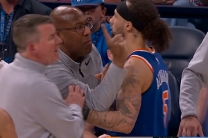 談及自己在比賽中不滿裁判判罰被吹技術犯規,邁克·布朗說道:“我吃T主要是為了向隊員們表明,我會盡力保護他們,但比賽的勝負并不取決于此。我會和你們站在一起。我們這支球隊,今晚表現得很明顯,對裁判抱怨得太多了。如果我們以為沖著裁判大吼大叫,或者浪費時間和精力去跟裁判爭執,就能改變他們的判罰,那是行不通的。”