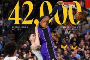 去年今日:詹姆斯生涯常規賽總得分突破42000分大關 歷史獨一檔
