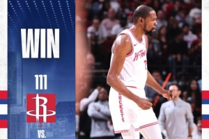 火箭官方發(fā)布本場(chǎng)比賽贏球海報(bào),封面人物為杜蘭特。