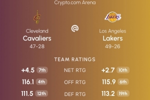 湖人凈效率+2.7聯盟第十,進攻效率115.9聯盟第六,防守效率113.2聯盟第19,戰績49勝26負。