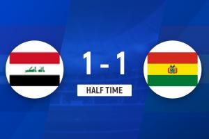 上半場補(bǔ)時5分鐘,伊拉克1-1玻利維亞。