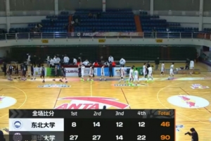 末節(jié)比賽,東北大學(xué)進(jìn)攻回暖,連投帶罰拿分努力追趕,但清華大學(xué)外線開火,許熙桐和何文煒先后飆中三分?jǐn)U大領(lǐng)先,東北大學(xué)火力無法延續(xù),清華大學(xué)繼續(xù)拉開分差,最終,清華大學(xué)90-46以44分的優(yōu)勢(shì)大勝東北大學(xué)。