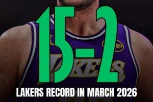整個三月份(當地時間),湖人一共打了17場比賽,戰績15勝2負。