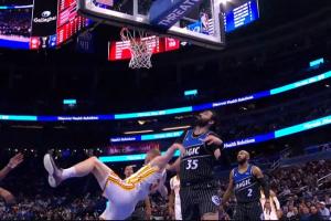 比賽末節,比塔澤在防守中從身后一把拉下空中的蘭代爾,致其膝蓋著。