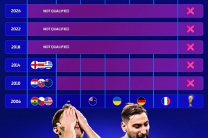 體育資訊4月2日訊 世預(yù)賽附加賽決賽,意大利點球大戰(zhàn)不敵波黑,連續(xù)三屆無緣世界杯。德國轉(zhuǎn)會市場盤點了2006年以來意大利的世界杯成績。