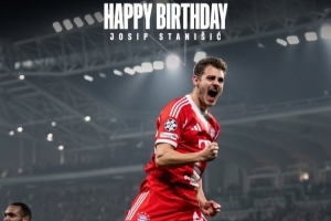 體育資訊4月2日訊 今天是拜仁后衛(wèi)斯坦尼西奇的26歲生日,拜仁官方為他慶生。