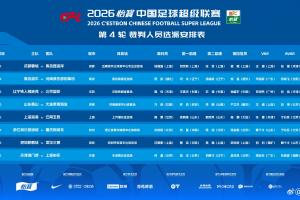 體育資訊04月03日訊 中國足協公布中超第4輪裁判安排,本輪中超裁判仍無麥麥提江和唐順齊。