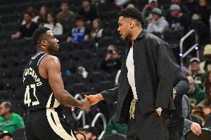 本場比賽,雄鹿球員字母弟弟和字母哥哥在最后時刻獲得出場機會,其中字母弟弟出戰(zhàn)4分27秒,投籃2中0均來自外線,罰球2中1,拿到1分1籃板的數據;字母哥哥出戰(zhàn)5分12秒,投籃1中0來自外線,沒有得分入賬,拿到1籃板1搶斷的數據。