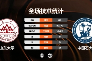 末節比賽,雙方依舊是打得難解難分,中國石大半節時間僅拿到4分被山東大學追上并反超,比賽懸念打到了最后,關鍵時刻廉舒予命中準絕殺三分球反超,中國石大最后一球直接失誤錯失機會,最終山東大學86-85險勝中國石大。