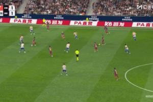 西甲第30輪,十人馬競(jìng)主場(chǎng)1-2遭巴薩逆轉(zhuǎn)絕殺。比賽第70分鐘,巴薩前場(chǎng)配合,費(fèi)蘭一腳出球,奧爾莫前插的同時(shí)順勢(shì)腳后跟挑球過人殺入馬競(jìng)禁區(qū),吸引馬競(jìng)多人防守后將球送到中路,費(fèi)蘭插上掃射被穆索撲出,一次極好的機(jī)會(huì)!
