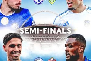 足總杯半決賽將于英國當?shù)貢r間4月25日和26日在中立場溫布利球場舉行,采用單回合制,90分鐘內打平則進行30分鐘加時賽(上下半場各15分鐘),若仍未分勝負則通過點球大戰(zhàn)決出勝負。