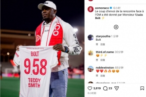 摩納哥官方ins寫道:“歡迎博爾特先生來到現場,為球隊與馬賽的比賽開球。”