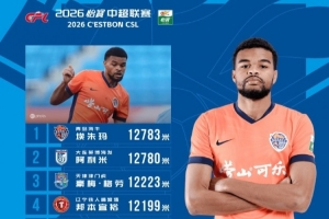 體育資訊4月6日訊 今日,中超聯賽官方公布了第4輪跑動榜,海牛外援埃朱馬連續兩輪登頂,本輪他的跑動距離為12783米,英博外援阿利米僅以3米之差列第二位。