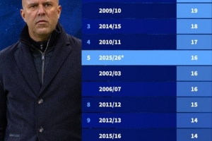 根據德國轉會市場的統計數據,新世紀以來,利物浦本賽季的輸球場次已經位居球隊單賽季輸球場次榜第5位。
