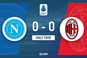 上半場補時1分鐘。半場戰罷,那不勒斯0-0米蘭。
