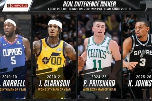上述4人中,除凱爾登外都拿到了當賽季的最佳第六人。