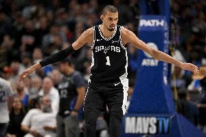 體育資訊4月7日訊 NBA常規賽,馬刺半場62-55領先76人。
