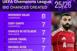 本賽季歐冠創(chuàng)造重大機(jī)會(huì)榜:
