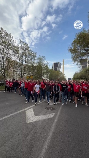 體育資訊04月08日訊 歐冠8強首回合,拜仁客戰(zhàn)皇馬,賽前拜仁官方曬出了球迷遠征軍朝伯納烏前進的視頻。