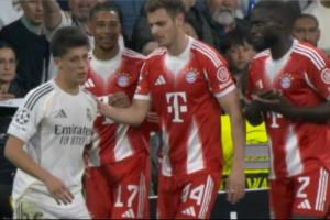 歐冠1/4決賽首回合,皇馬主場(chǎng)1-2不敵拜仁,比賽第60分鐘,卡雷拉斯從身后踢倒奧利塞,奧利塞倒在邊線外,主裁吹了犯規(guī),拜仁后場(chǎng)任意球。這時(shí)居萊爾過(guò)來(lái)將奧利塞強(qiáng)行拖拽回場(chǎng)內(nèi),斯坦尼西奇和于帕梅卡諾當(dāng)即趕來(lái)為奧利塞出頭,不過(guò)奧利塞面帶微笑十分平靜,似乎還在安撫出頭的隊(duì)友。