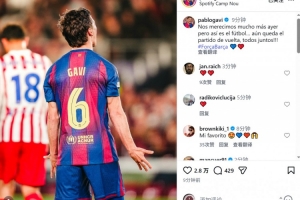 加維社媒曬出比賽照片,并寫道:“昨天我們本應得到更好的結果,但這就是足球。還有次回合比賽,讓我們團結一心!”