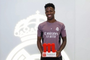 維尼修斯被評(píng)選為三月份“Mahou五星球員”。這位前鋒獲得了這一殊榮,以表彰他在上個(gè)月參加的6場(chǎng)比賽中的杰出表現(xiàn)。在那期間,維尼修斯在對(duì)陣曼城的歐冠1/8決賽次回合中上演梅開二度,并在聯(lián)賽第29輪對(duì)陣馬競(jìng)的德比戰(zhàn)中再次打入兩球。