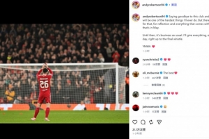 羅伯遜社媒:告別利物浦和紅軍球迷是我人生中最艱難的決定之一