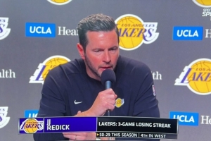 體育資訊4月10日訊 湖人客場挑戰勇士,賽前主教練雷迪克接受采訪,談到球隊近期的三連敗。