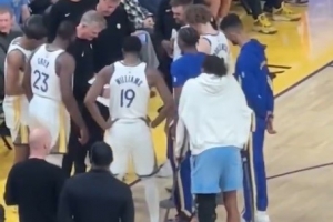 GIF-穆迪拄拐在場邊觀戰 在隊友戰術圈外徘徊