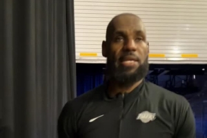 體育資訊4月10日訊 今日,湖人119-103客場擊敗勇士。賽后,NBA官推曬出一段湖人球星詹姆斯賽后球員通道采訪。