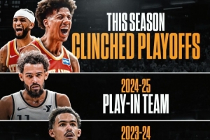 老鷹戰績46勝35負,排名東部第五、正式鎖定季后賽(東部前六)和東南區冠軍。