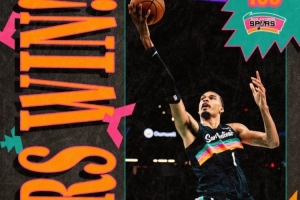 此役過后,馬刺戰績更新為62勝19負位列西部第2,賽后,馬刺官方曬出62勝海報,文班輕舒猿臂上籃入鏡。