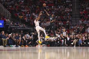 我們即使沒有三分球也得了130分,但是當有人在你頭上投進干拔三分,而且他們比你多進了11個三分球時,這很傷士氣。如果我們能把這個差距縮小一半,或者我們也多進幾個,這很容易就是我們要贏20分的比賽。所以三分球線一直是很多球隊贏球的原因,這是這個聯盟很多球隊之間的區別。嗯,所以你得稱贊他們投進了一些球,但我們得到的分數足以贏下比賽。