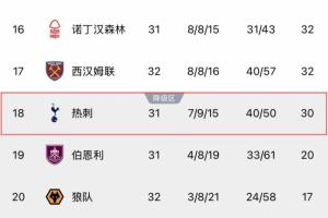 體育資訊04月11日訊 英超第32輪,西漢姆聯(lián)先賽4-0大勝狼隊,暫時逃離降級區(qū),而熱刺則以2分劣勢落入降級區(qū),本輪必須客勝桑德蘭才能提升排名。